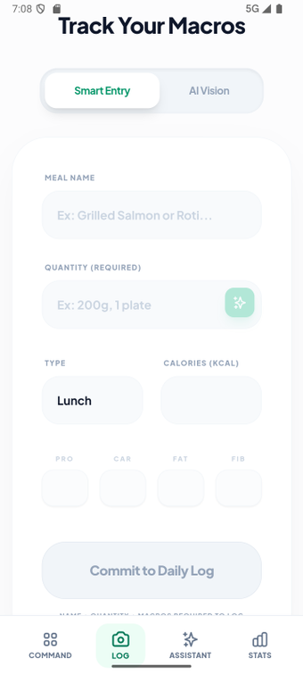 NutriFlow AI позволяет вам записывать ежедневные приемы пищи и отслеживать макронутриенты, такие как белки и углеводы, чтобы помочь вам поддерживать здоровый образ жизни. Интерфейс придает приоритет доступности, с чистым и простым в понимании дизайном, что делает его простым для записи приемов пищи и тренировок на ходу.