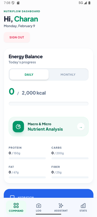 NutriFlow AI — это бесплатное приложение AI помощника по жизни от Sri Charan, которое отслеживает ваше питание, мониторит ежедневную активность и предоставляет аналитические данные на основе AI о ваших привычках здоровья для улучшения вашего рациона и тренировок. Оно разработано с учетом простоты, позволяя тем, у кого плотный график, регистрировать потребление пищи и тренировки всего за несколько секунд.
